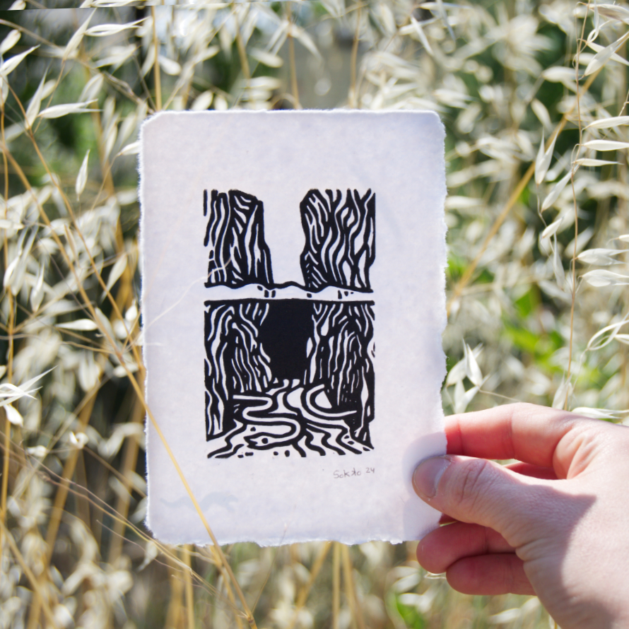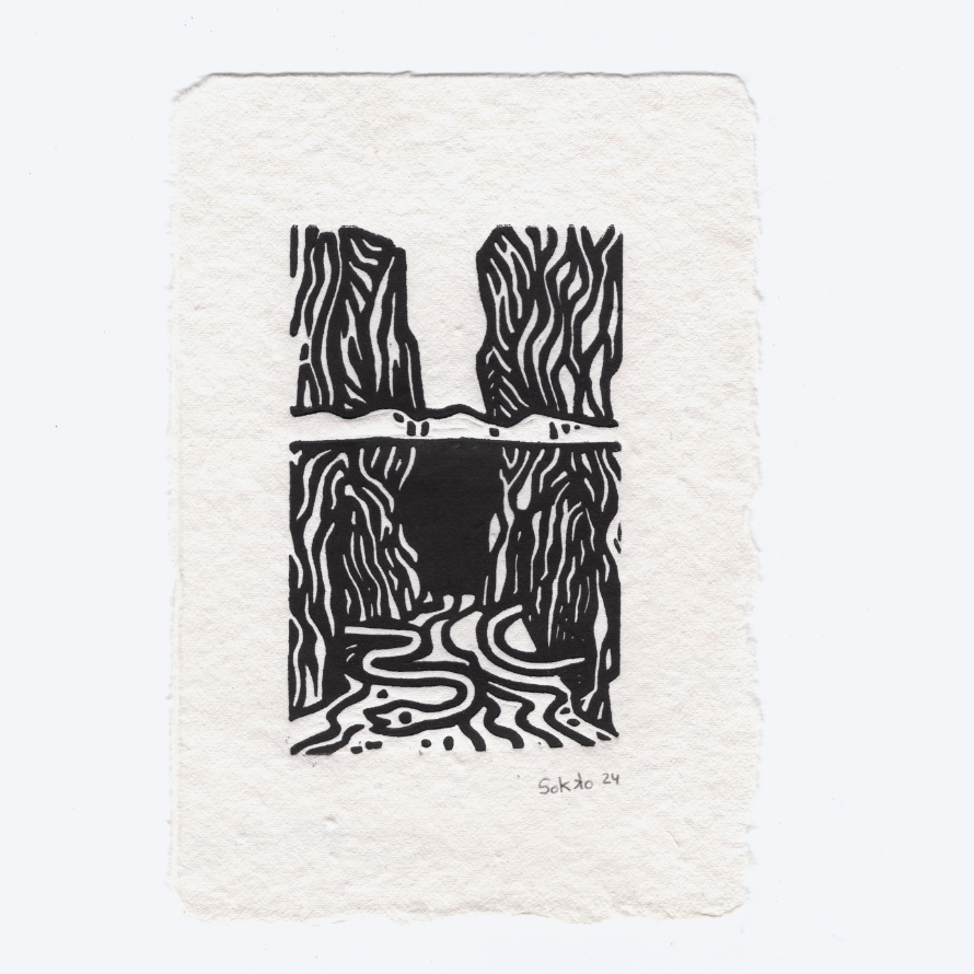 At the bottom of the cliff of thick, dark waters, there was a snake emerging from even darker galleries.